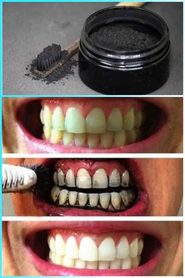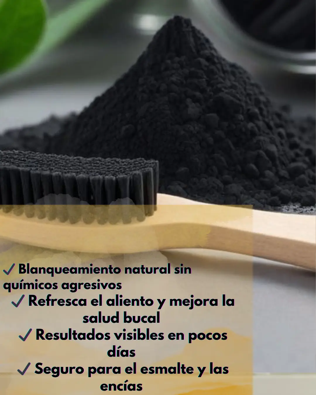 Polvo negro fino que blanquea los dientes de forma rápida, 100% orgánico, vegano y suave, sin químicos que dañen el esmalte.